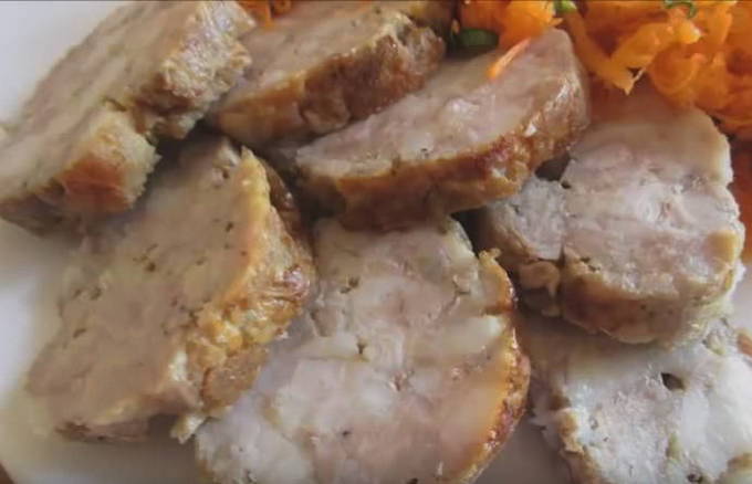 Dit recept zal bewijzen dat het helemaal niet nodig is om zetmeel en gelatine te gebruiken om alle componenten van de worst te laten stollen. Om dit te doen, hebben we gewoon perfect op elkaar afgestemde verhoudingen van ingrediënten nodig.