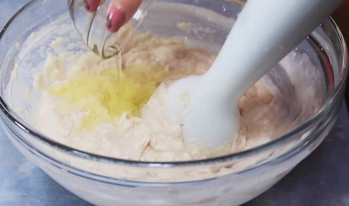- Voeg vervolgens de room toe, gecombineerd met het eiwit en blijf kloppen tot een homogene massa is verkregen die lijkt op een pasta.