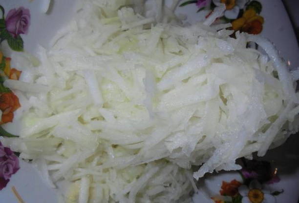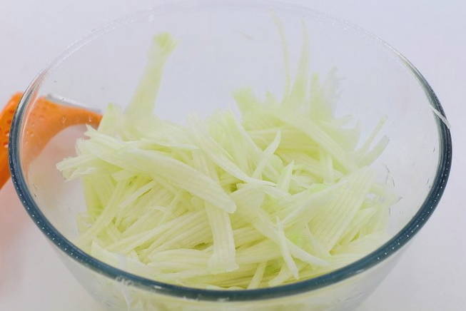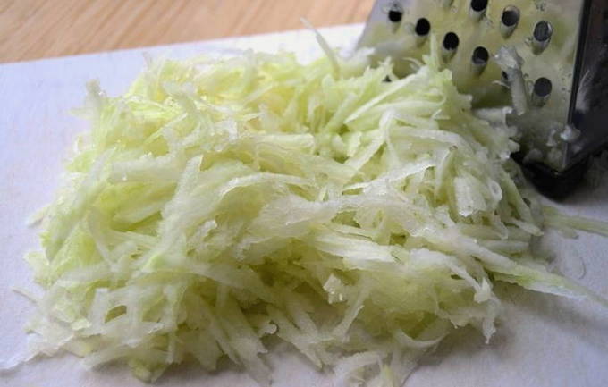 - Bereid alle ingrediënten voor die je nodig hebt. Koolrabi wassen, schillen en raspen.