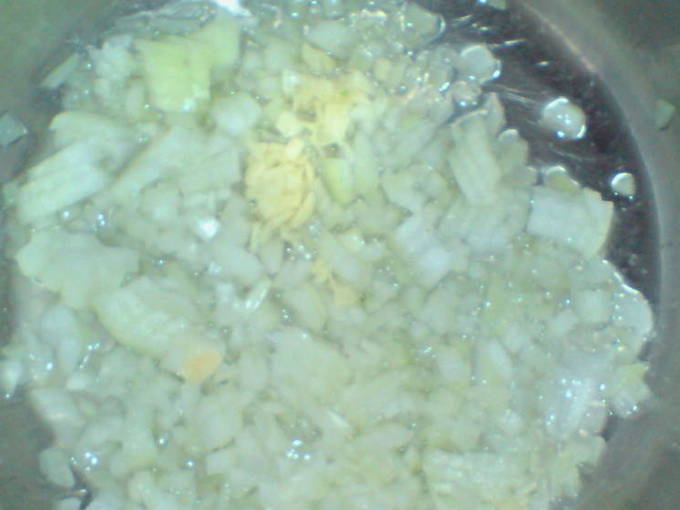 - Giet plantaardige olie in een pan met dikke bodem en fruit hierin de uien en knoflook.