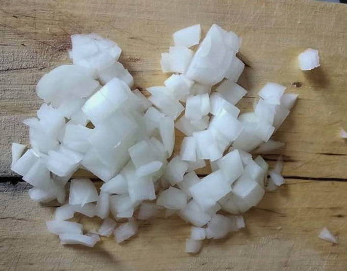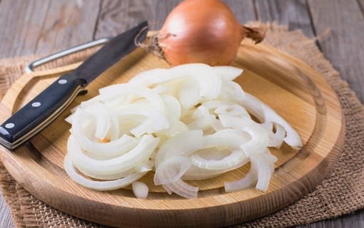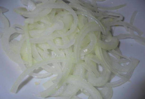- Haal de schil van de ui en snijd hem in halve ringen.