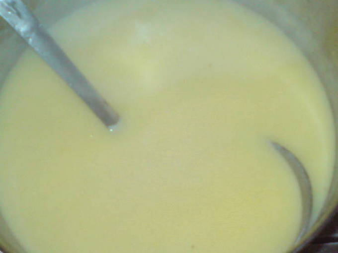 - Giet een deel van de bouillon in een andere kom, pureer de rest met een blender. Giet vervolgens de bouillon terug in de pan, voeg room, zout en peper naar smaak toe.