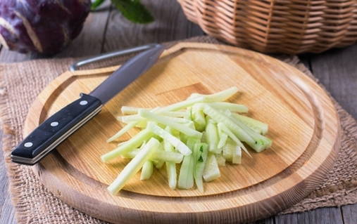 Heerlijke en sappige koolrabi is een uitstekende basis voor groentesalades. Het past goed bij veel soorten groenten. We maken een heerlijke salade van koolrabi, komkommer en wortel.