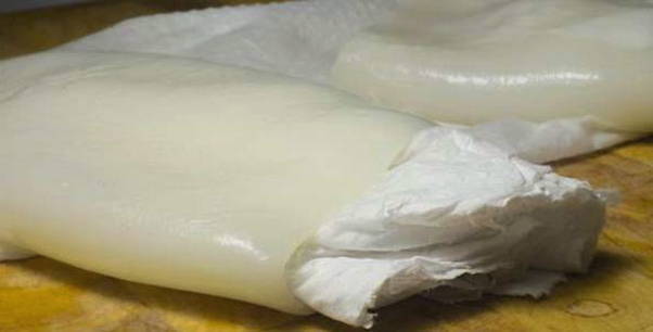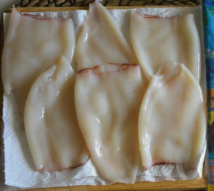 - Ontdooi de inktvis volledig, verwijder de films en droog ze.