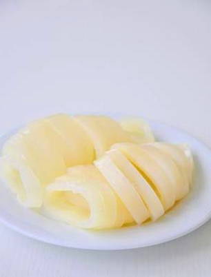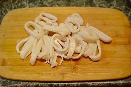 - Ontdooi de inktvis volledig, was, schil en snijd in ringen.