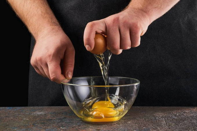 - Klop in een kom een ei los met een garde of vork.