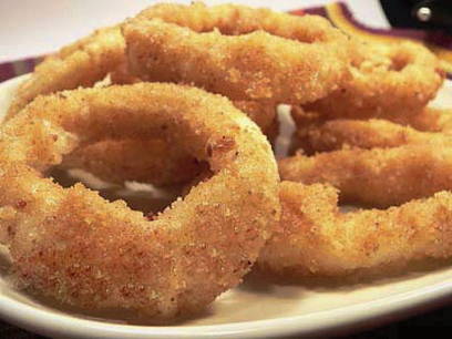 - Om overtollig vet te verwijderen, dep de ringen met keukenpapier en serveer.