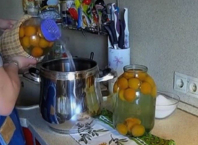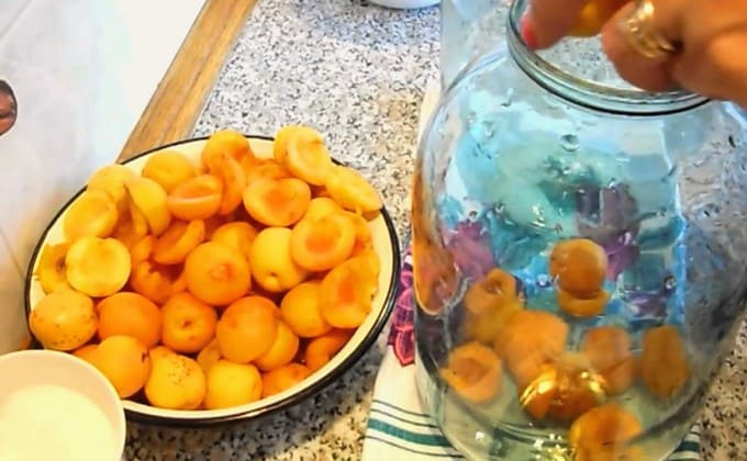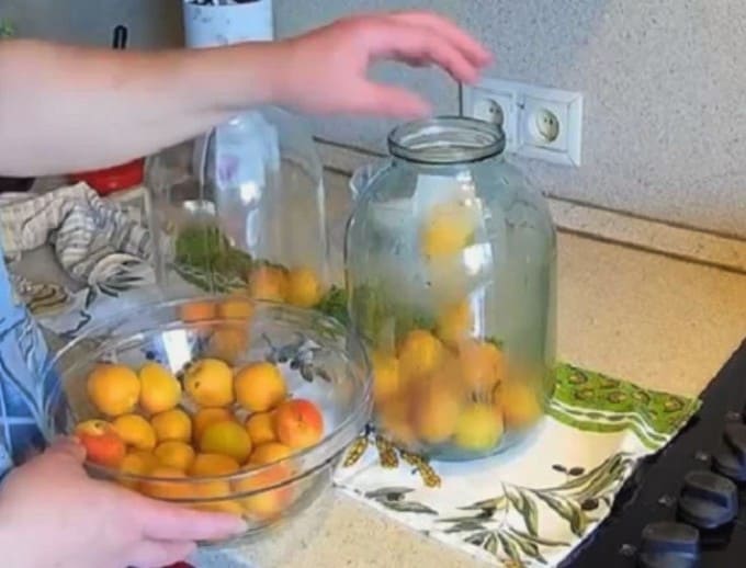 - Doe de voorbereide abrikozen in een voorgesteriliseerde pot.