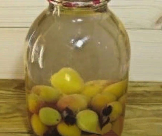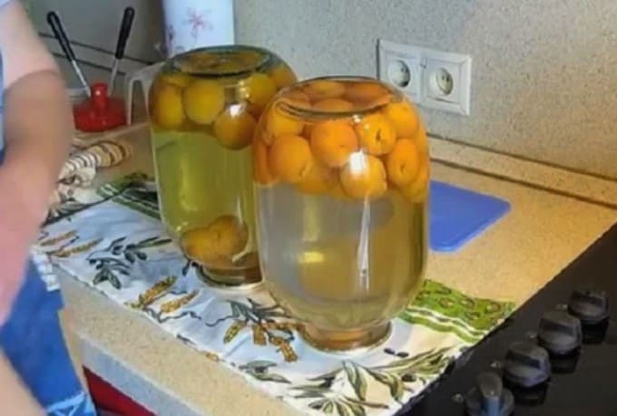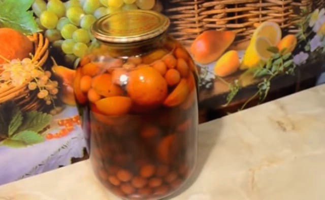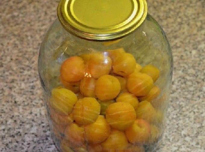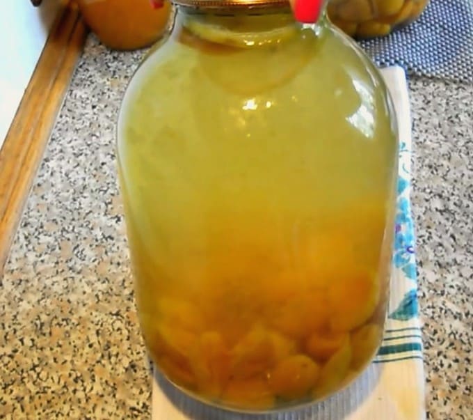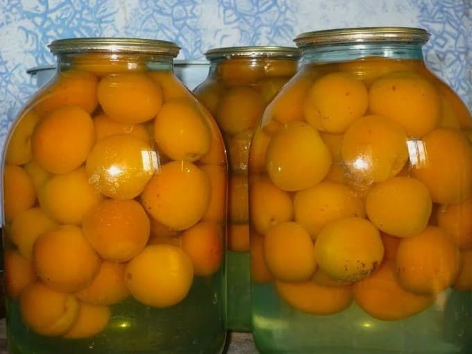 - Abrikozencompote in een pot van 3 liter voor de winter