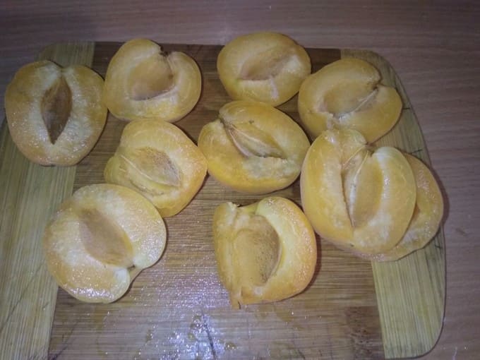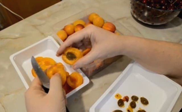 - We wassen de abrikozen, verwijderen de zaden. We snijden de vruchten zelf doormidden.