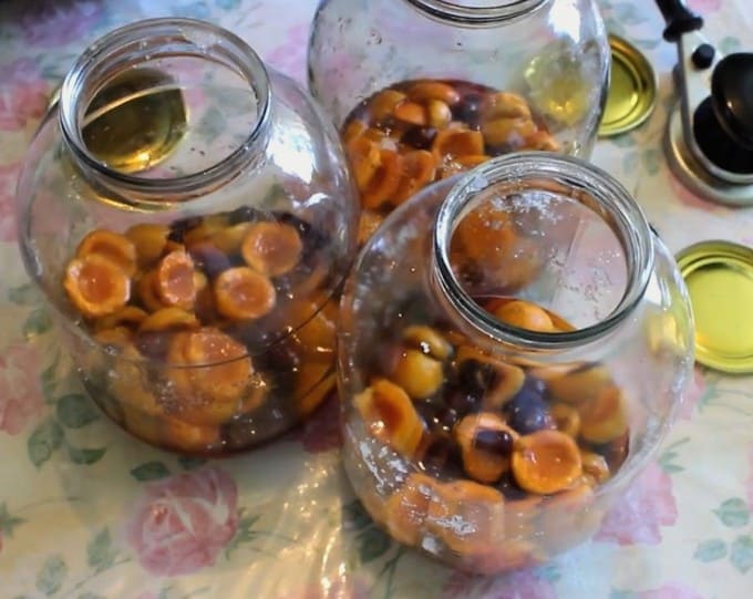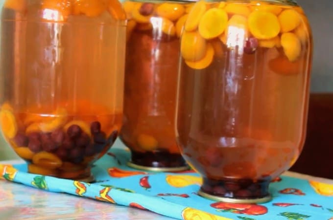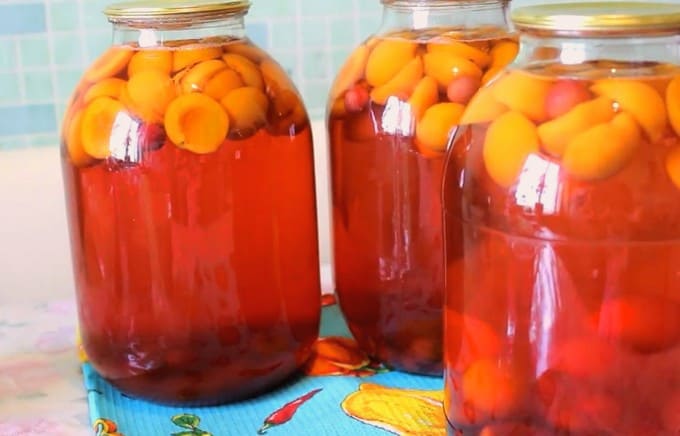Abrikozen-perzikcompote voor de winter