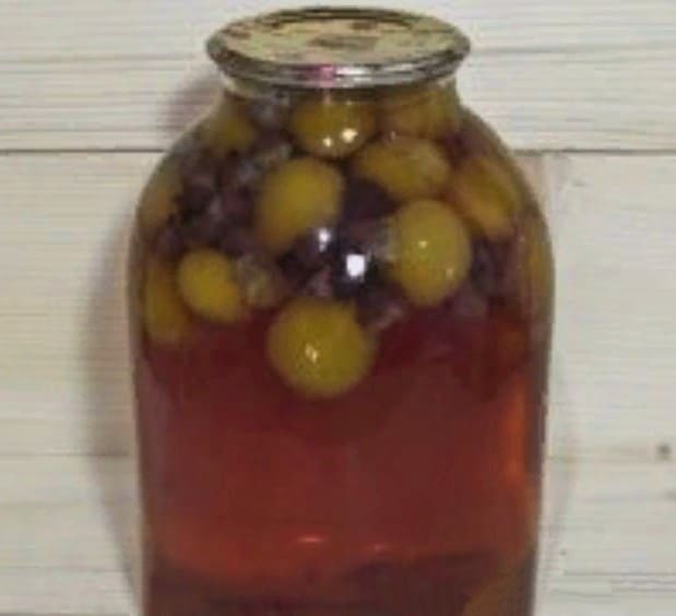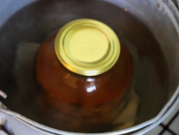 - Na het sterilisatieproces wordt de pot met compote direct opgerold met een deksel. We draaien het werkstuk ondersteboven, laten het in deze vorm totdat het volledig is afgekoeld.