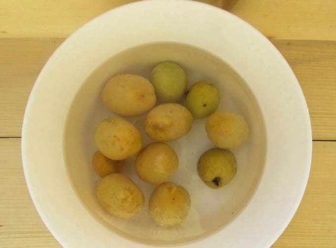 - Giet na een tijdje kokend water over de abrikozen en kersen.