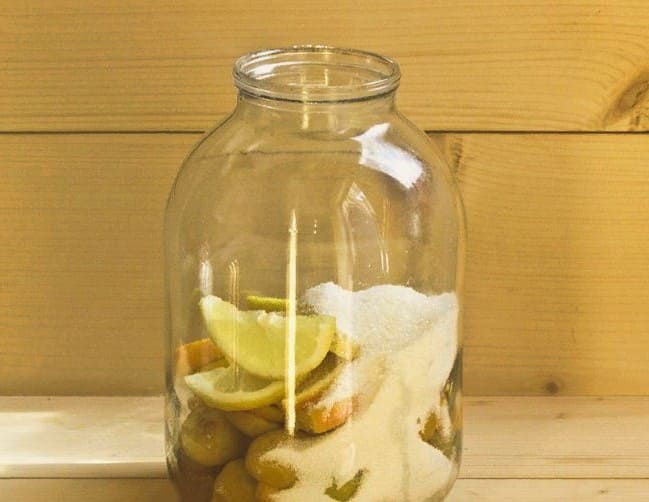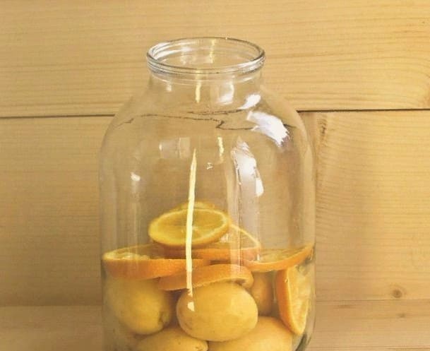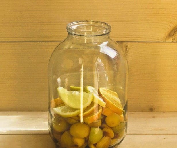 - We verspreiden de hoofdingrediënten - abrikozen, sinaasappel en citroen - in een gesteriliseerde container.