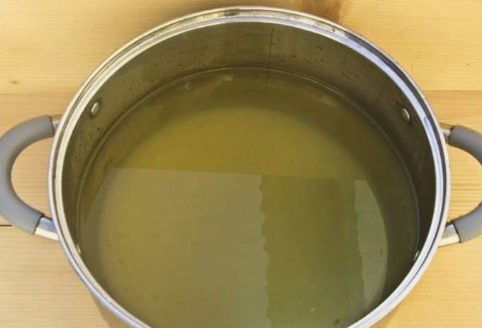 - Giet na een tijdje het water uit de pot in een pan.