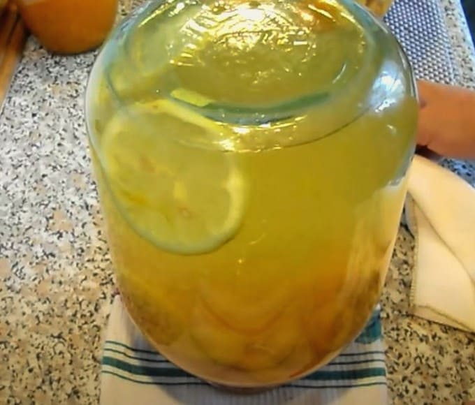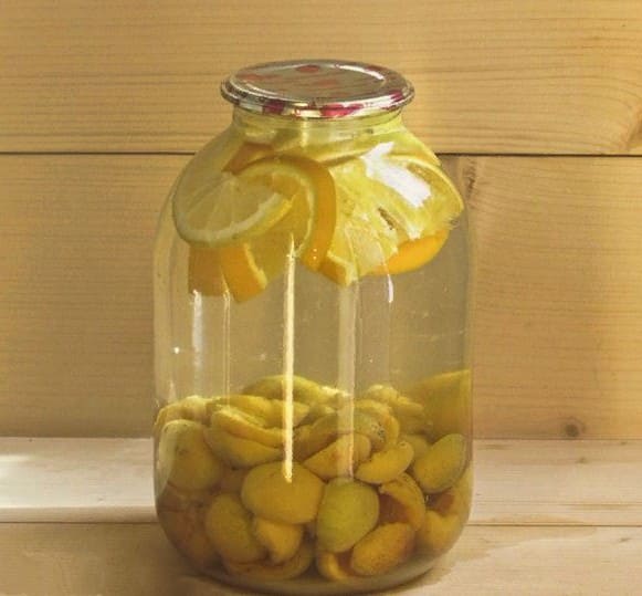 - Giet abrikozen met citroen met kokend water. Bedek de container vervolgens met een deksel en laat hem 30 minuten opwarmen.
