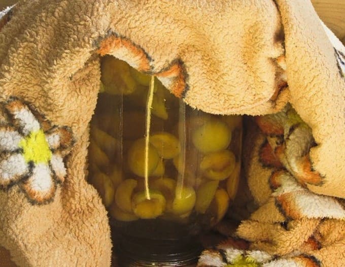 - Rol de pot op met een voorgekookt deksel, draai de blanco ondersteboven. Wikkel de compote voor een langzame afkoeling in een warme deken.