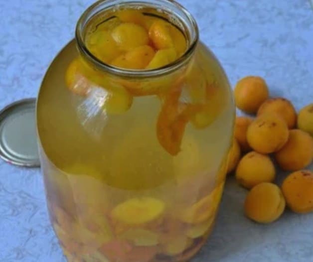 - Abrikozencompote in een pot van 3 liter voor de winter