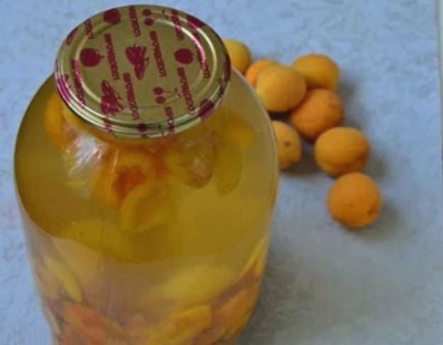 - Vul de abrikozenpot met de bereide siroop. Daarna moet de compote onmiddellijk worden opgerold met een gekookt deksel.
