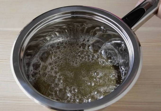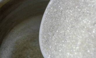 - Giet het geïnfuseerde water af in een pan en voeg er suiker aan toe. Kook het product 2-3 minuten totdat het droge product is opgelost.