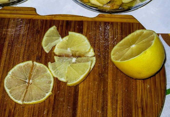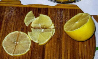 Ook snijden we de citroen in dunne plakjes.