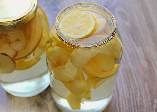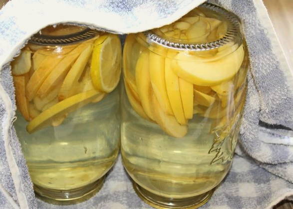 - Voeg dunne schijfjes citroen toe aan de potten met kweepeer. Vul het product met hete siroop.