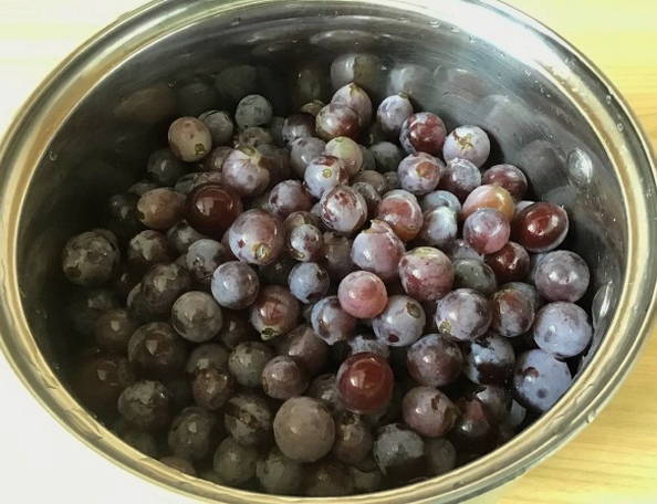 - We scheiden de druiven van het nieuws en spoelen ze ook af onder stromend water.