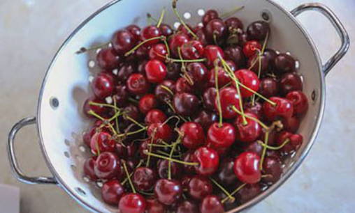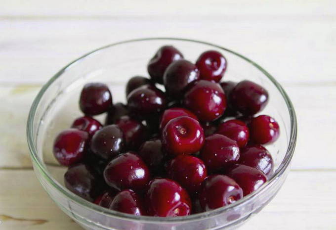 - Sorteer de kersen, was ze en gooi ze weg in een vergiet.