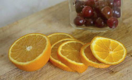 - Giet kokend water over de sinaasappel, was en snijd in plakjes.