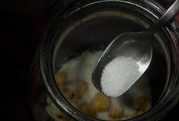 Giet na een kwartier het water terug in de pan en voeg suiker toe aan de potten.