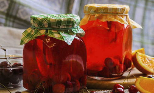 - Giet kokende compote in potten, rol ze onmiddellijk op met deksels. Draai de naden om, wikkel ze in een deken en laat ze volledig afkoelen. Bewaar de kersen- en sinaasappelcompote op een donkere plaats.