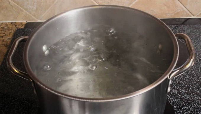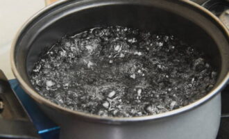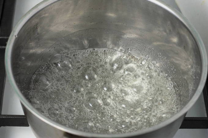 - Giet water in een pan en zet het op het fornuis. Wij omvatten. Breng het water op middelhoog vuur aan de kook.