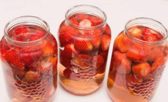 Om aardbeiencompote voor de winter te bereiden, moet je dichtere bessen toevoegen en kleine vruchten heel laten en grote in tweeën of in vier delen snijden. Het is beter om kokend water over de aardbeien te gieten: ze zullen niet inkoken en intact blijven.