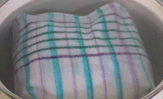 - Haal de pot na 30 minuten uit het water en rol hem op. We leggen het ondersteboven op een koele plaats en wikkelen het met een deken. Na een dag zetten we het in de voorraadkast voor opslag.