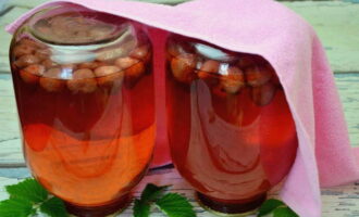 Sluit het deksel goed en draai de pot ondersteboven. We wikkelen het met een deken en laten het afkoelen. Na verloop van tijd krijgt de compote een mooie rijke kleur.