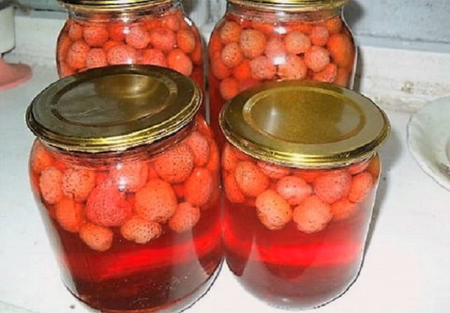 De wilde aardbeidrank blijkt rijk te zijn, met een zoetzure smaak. Als de compote te plakkerig is, kan deze worden verdund met gekookt water.