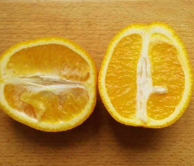 - We wassen de sinaasappel, snijden hem in twee gelijke delen met een mes. We maken de helft van de schil schoon, botten. We verwijderen de witte strepen, anders wordt de compote bitter. Snijd zo klein mogelijk.
