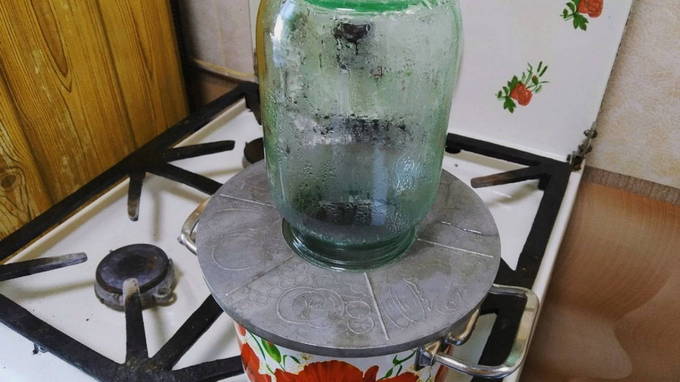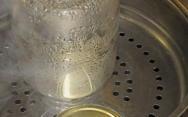 - We steriliseren de pot en het deksel voor de toekomstige compote in een stoombad of in een oven.