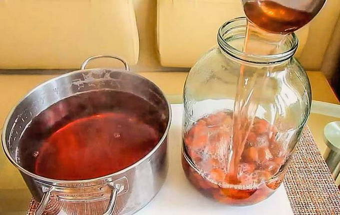 - We halen de blikjes compote uit de pan, rollen het op. We draaien de banken om en bedekken met een deken. Na 2-3 dagen, wanneer de potten met compote zijn afgekoeld, gaan we naar de kelder.