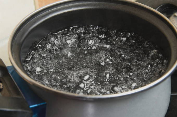 - Giet water in een pan en zet het op het fornuis. Wij omvatten. Breng het water op middelhoog vuur aan de kook.
