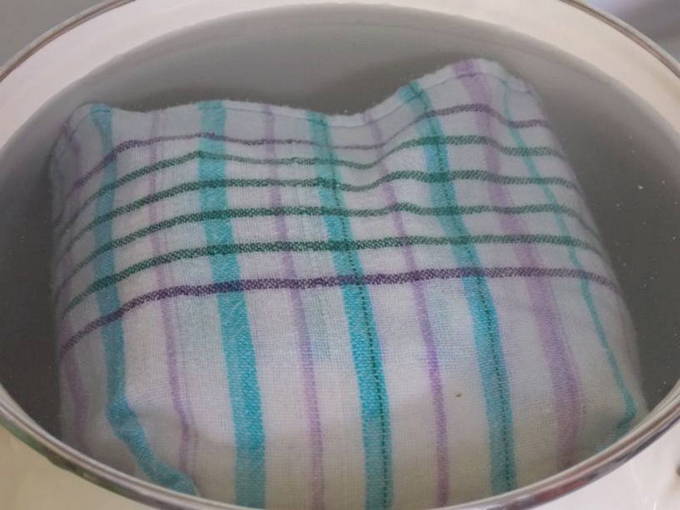 - We zetten de potten en de deksels op een schone, droge handdoek en drogen ze.