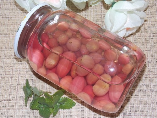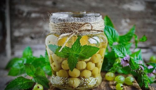 Mojito-compote van kruisbes en munt wordt aanbevolen als een uitstekende verfrissende drank in de hitte, maar het zal zelfs in de winter niet overbodig zijn in uw voorraadkast. Mensen met diabetes moeten weten dat deze compote veel suiker bevat, want kruisbessen zijn zure bessen. Het recept is ontworpen voor 1 blik van drie liter, maar je kunt dezelfde hoeveelheid ingrediënten in kleinere blikjes doen.
