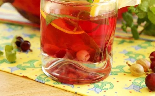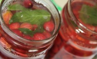 Je kunt een zeer smakelijke mojito krijgen als je citroen vervangt door sinaasappel en in plaats van groene kruisbessen rood toevoegt, wat veel zoeter is. Trouwens, als je niet van munt of citroenmelisse houdt, is het niet nodig om ze samen aan de compote toe te voegen, het volstaat om een van deze geurige pittige kruiden toe te voegen. Recept voor 1 blik van drie liter.