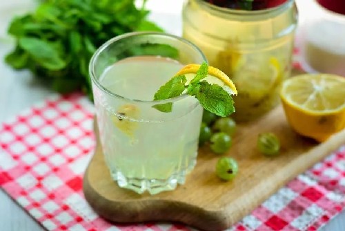 Citroen geeft de mojito een kruisbes-citruszuur en een aangename, lichtgele tint, en uiteindelijk krijg je een zeer smakelijke verfrissende fruit- en bessendrank met een smaak van munt en citroenmelisse. Het recept wordt gegeven voor één blik van drie liter.