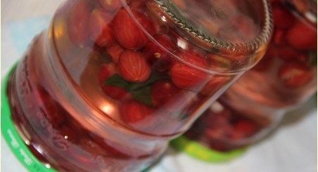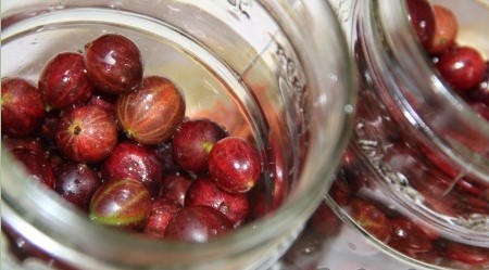 - Doe de kruisbessen in de potten (soms worden de kruisbessen een paar minuten geblancheerd in kokend water en dan in de potten gedaan, maar dat hoeft niet).