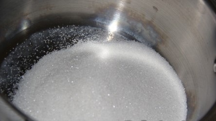 Giet kristalsuiker in een pan.