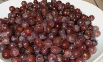 - Laten we de druiven voorbereiden. Om dit te doen, spoelt u de bessen goed af en droogt u ze lichtjes.
