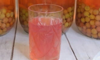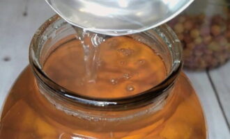 Giet precies na deze tijd het water uit de blikken in de pan, voeg kristalsuiker, citroenzuur toe en roer goed. Breng de siroop aan de kook en laat 2-3 minuten sudderen.