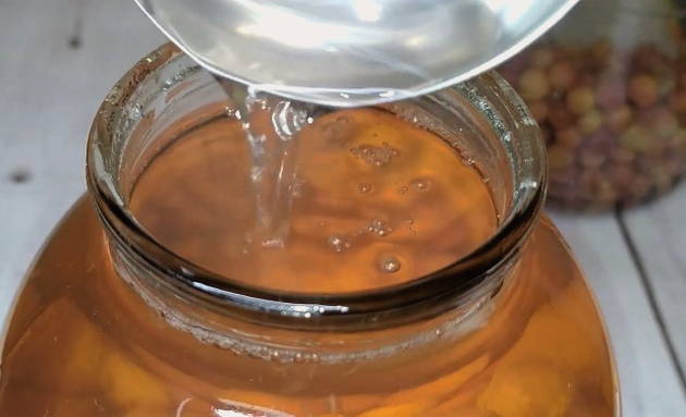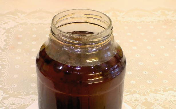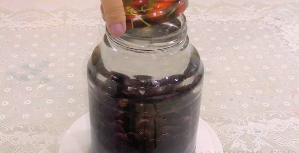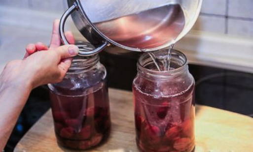 - Tegelijkertijd brengen we het water aan de kook en gieten het onmiddellijk in een pot, die we stevig oprollen met een gesteriliseerd deksel.