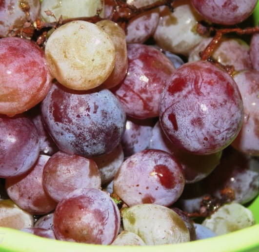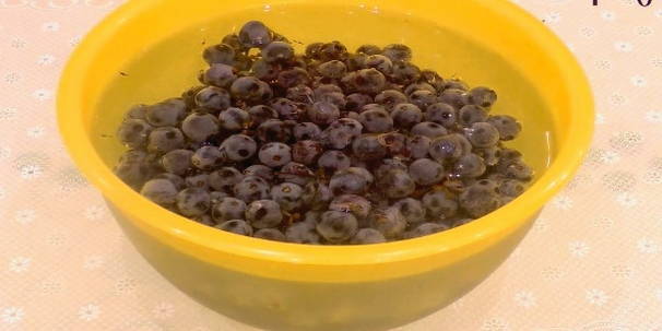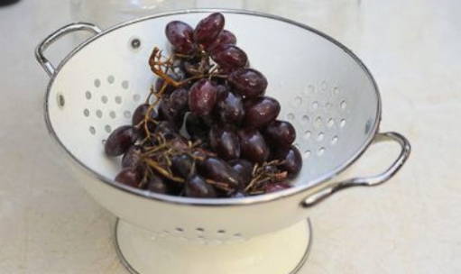 - Verwijder daarna de isabella-druiven van de trossen en laat ze ongeveer 10-15 minuten in koud water weken. Daarna laten we het water weglopen en spoelen de druiven opnieuw.